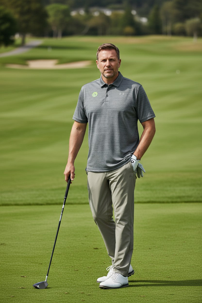 Camisa deportiva para hombre marca Under Armour, ideal para golf y actividades al aire libre.