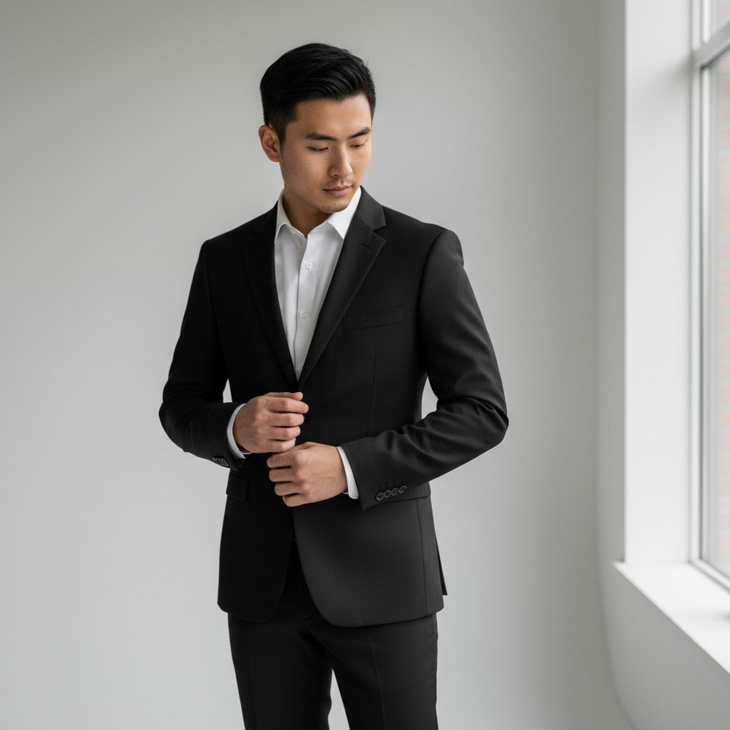 Diseñado en color negro sólido con corte moderno, combina estilo formal y comodidad premium.