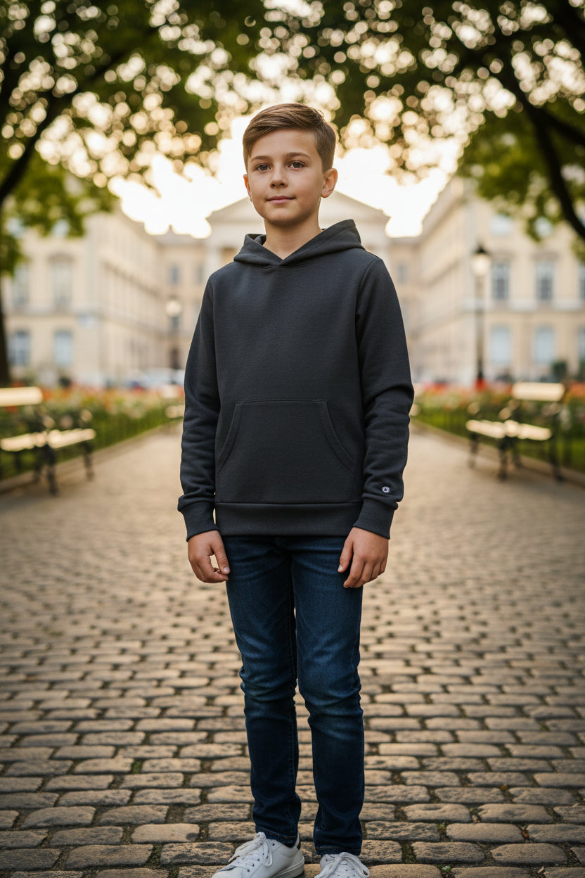 Sudadera para hombre en color negro, cómoda y ligera para el día a día. Tela suave, capucha clásica y bolsa tipo canguro para mayor practicidad. Ideal para clima fresco y combinable con cualquier outfit. Única pieza disponible con envío a todo México.
