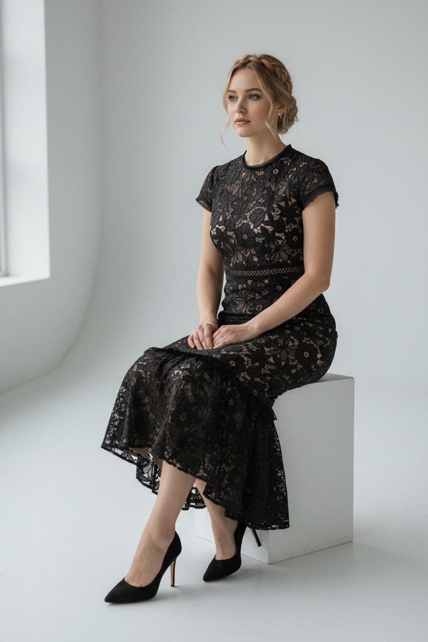 Este elegante vestido largo de fiesta color negro con encaje es perfecto para eventos especiales, bodas, cenas formales o cualquier ocasión donde quieras lucir sofisticada y con mucha presencia.