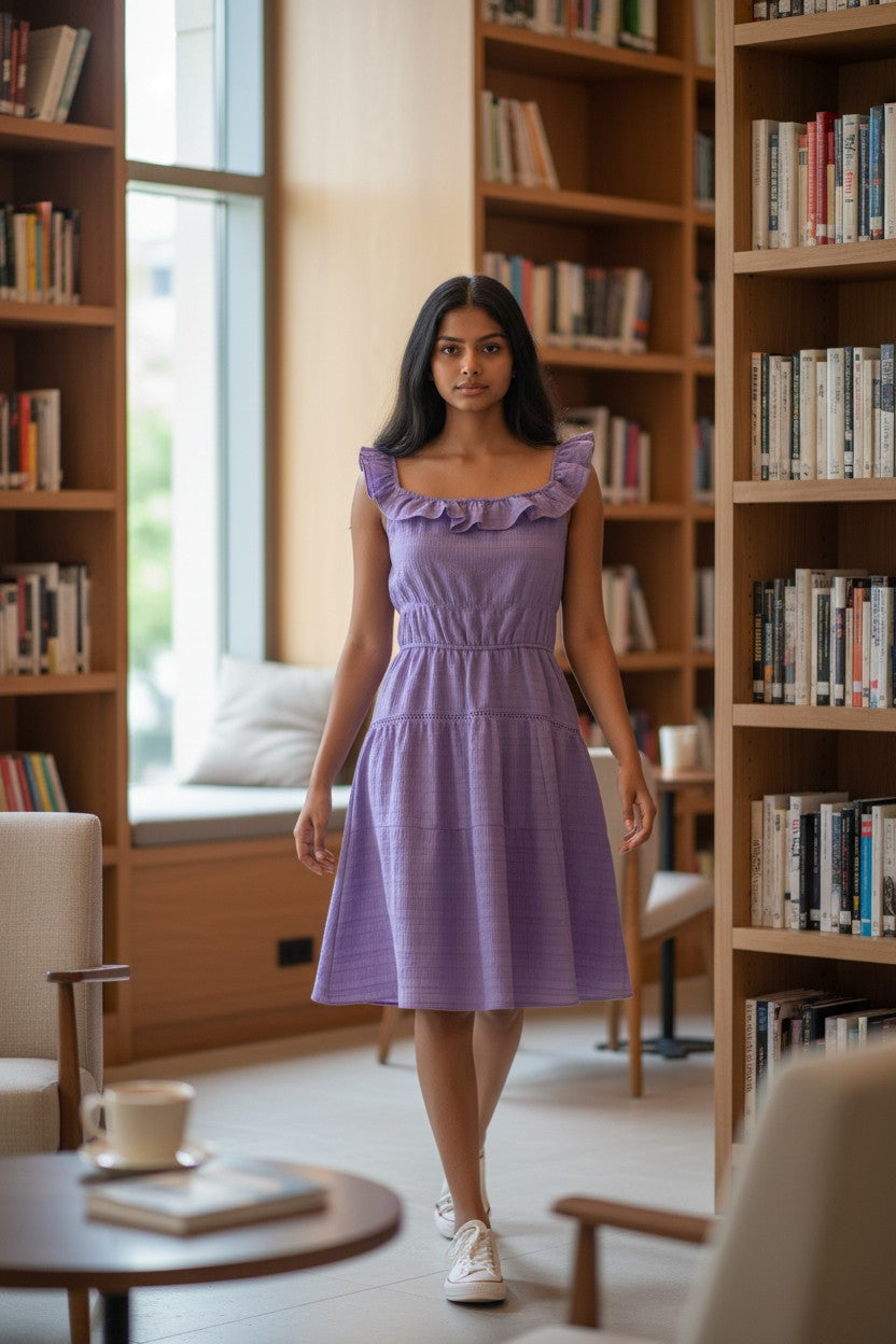 Este encantador vestido lila es perfecto para quienes buscan un look fresco, cómodo y femenino. Su diseño juvenil lo hace ideal para salidas casuales, eventos especiales o uso diario.